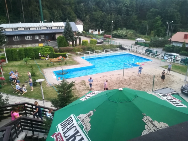 z odkrytego basenu (woda nieco zimna), boiska do siatkówki plażowej