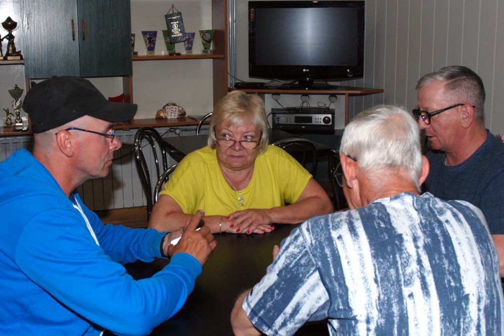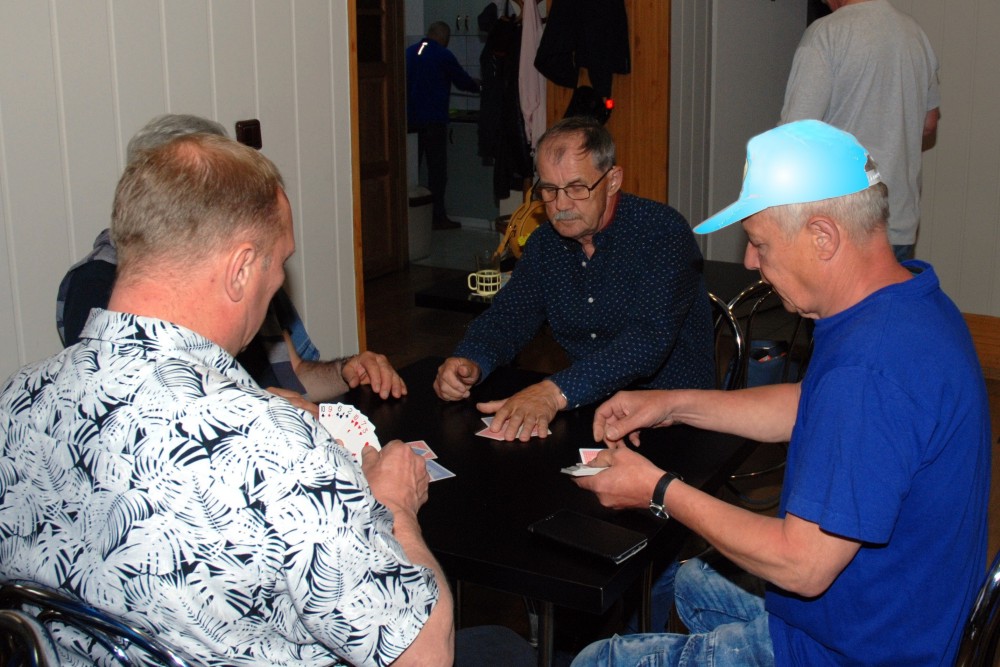zajęła miejsca przy stolikach by zagrać w karty,